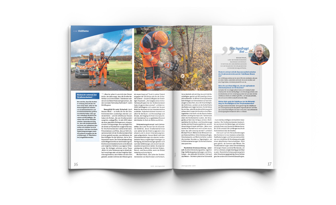 Layout und Satz für das Magazin "arbeit & gesundheit" Auftraggeber: CW Haarfeld, Köln