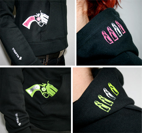 ...freundlich piepsende Pistolen auf T-Shirts und Hoodies
