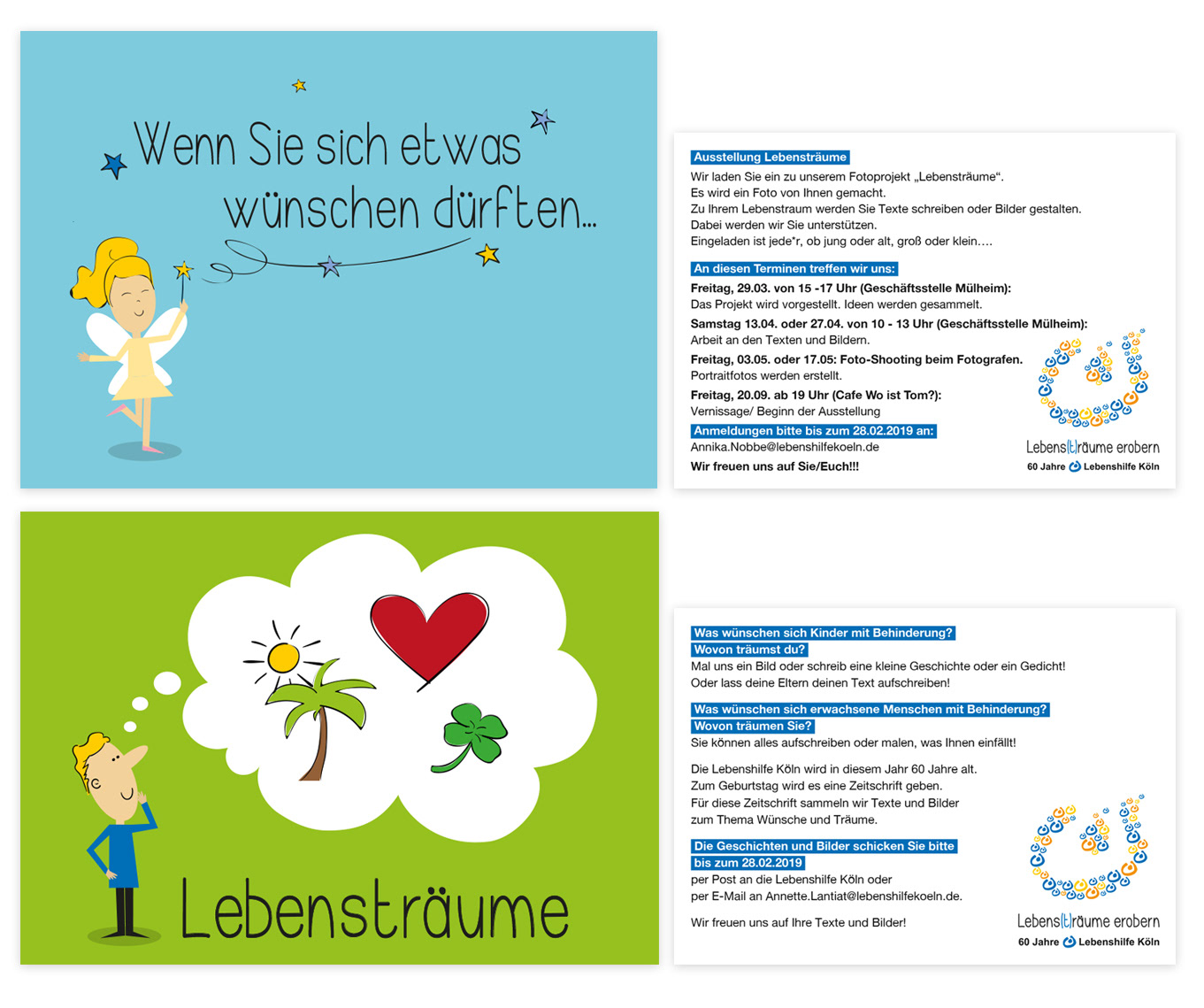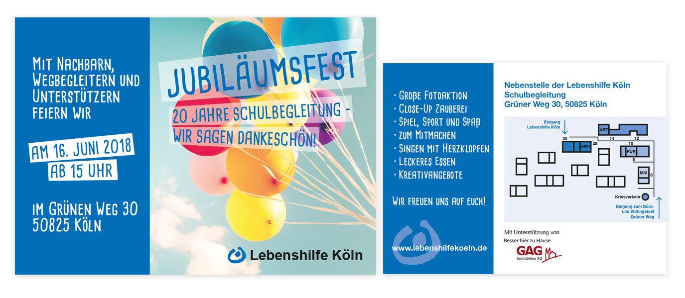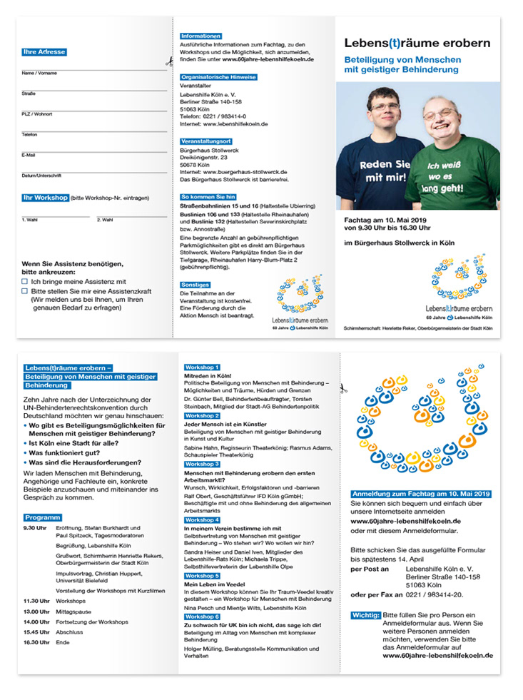 Gestaltung von Flyern, Faltblättern und Postkartenmotiven für verschiedene Veranstaltungen. Illustration | Layout | Satz Auftraggeber: Lebenshilfe Köln