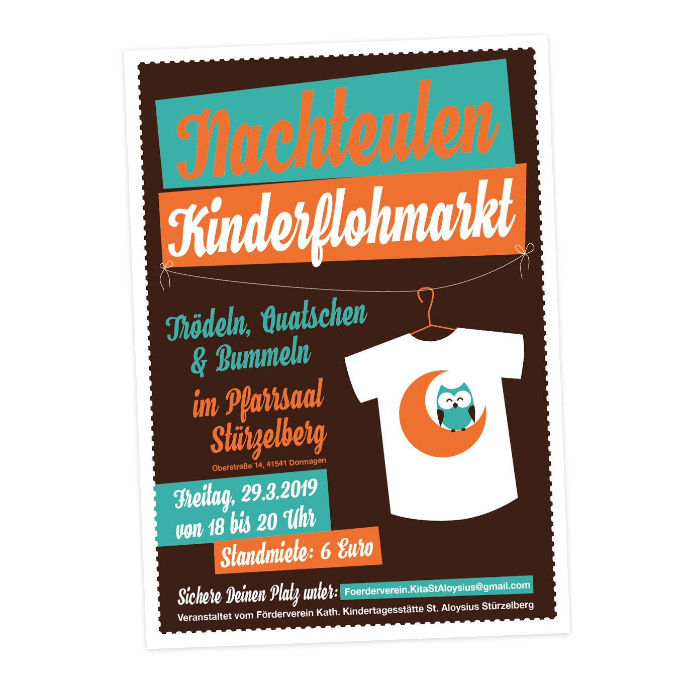Gestaltung des Plakats für den Nachteulen Kinderflohmarkt des Fördervereins der Kath. Kita St. Aloysius Stürzelberg